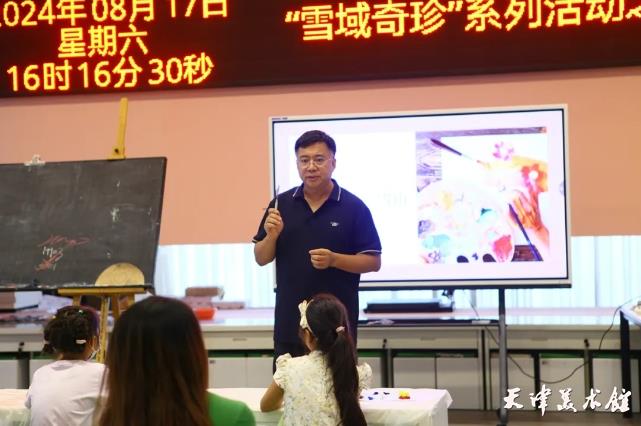 2024年暑期,“布达拉宫——来自雪域的世界文化遗产”特展在天津美术馆开幕,吸引了众多前来观展的游客和观众朋友们。为配合本次展览,天津美术馆在暑期延时闭馆期间特别策划了“雪域奇珍”系列文化艺术活动。8月17日,系列活动第三场“雪山油画”在大家的期待中如约举办。课上,主讲老师首先带大家欣赏了雪域高原的自然风光,感受雪山的圣洁、浩瀚苍穹的辽阔与藏族人民的淳朴。接着,主讲老师结合中外经典油画作品介绍了雪山油画的创作方法与技巧。