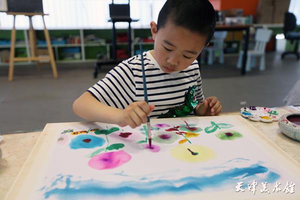 随后,小同学们围绕在老师身边,近距离观察老师是怎样运用颜料与水,绘制出像七彩泡泡一样美丽的花朵。动手环节中,孩子们在水与颜料的调和中、在富于变化的色彩中,不但感受着水彩画独有的魅力,也沉浸在春天的温暖中,一朵朵梦幻的七彩泡泡花在他们中间绽放。