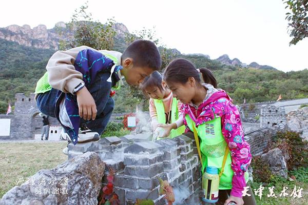 在模拟长城中,同学们找到被敌人破坏的龙凤岭长城,并以小组为单位,对这段残破的长城进行修复。