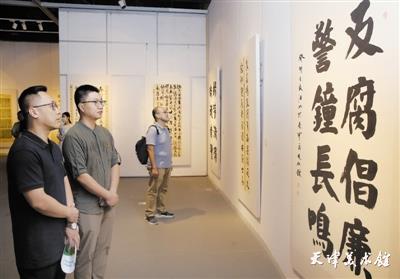 “清风正气”优秀文化作品展作为天津市文旅系统廉政文化的品牌活动,至今已连续举办六届。本届展览运用动静结合的展出形式,融合现场笔会、视听展播,立体化呈现弘扬新时代廉洁文化新气象。作品紧扣廉洁文化建设主题,以书言志,以画传廉,将中华优秀传统文化与党性教育、廉政教育有机融合,从不同视角展现廉洁文化。